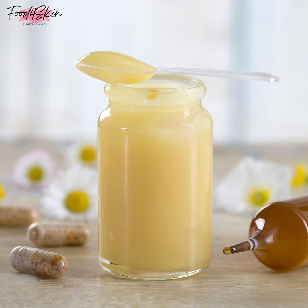 นมผึ้ง หรือที่หลายคนเรียกทับศัพท์กันว่า รอยัลเจลลี่ (Royal Jelly) นั้นเป็นผลิตภัณฑ์ที่ได้จากผึ้งที่มีลักษณะเป็นของเหลวครีมสีขาวคล้ายนม จึงเรียกว่า “นมผึ้ง” ซึ่งเอาไว้เป็นอาหารสำหรับตัวอ่อนของผึ้งนางพญา เมื่อเก็บนมผึ้งมาแล้วจะมีการนำไปผ่านกรรมวิธีเพื่อให้กลายเป็นผงหรือเกล็ด เช่น การสกัดเย็นหรือ Freeze Dry แล้วนำมาทำเป็นผลิตภัณฑ์เสริมอาหารนั่นเอง